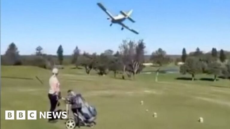 This is the moment the light aircraft made an emergency landing on a golf course in Sydney, with the pilot and the passenger fleding without much injury. The Piper Cherokee aircraft crashes at Mona Vale’s golf club during a training…
