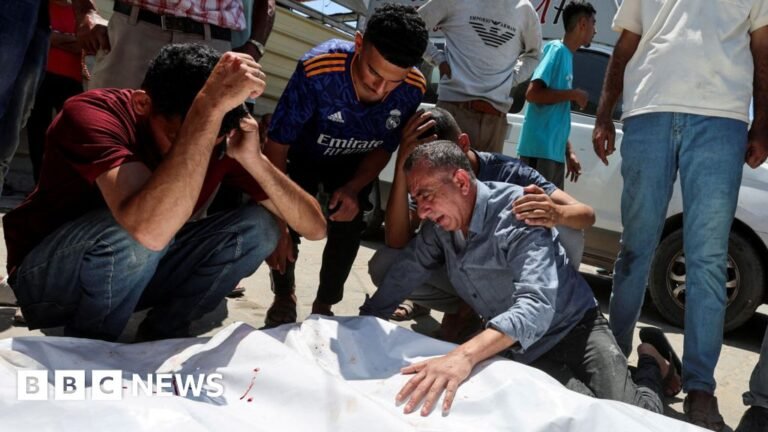 Rushdi Abualouf Gas correspondent Reuters People mourn the Palestinians who were killed in Israeli air strike in Deir al-Bala At least 18 Palestinians have been killed after Drona’s Israeli strike is aimed at a Hamas police unit trying to uphold…