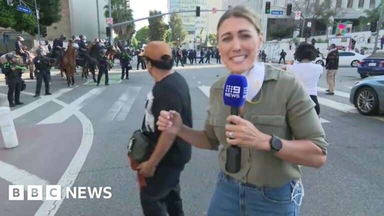 Australian foreign correspondent was affected by what was understood as a rubber bullet while reporting Los Angeles. Lauren Tomasi of Channel Nine was seen jumping from pain after the incident at which she was hit on her feet on Sunday.…