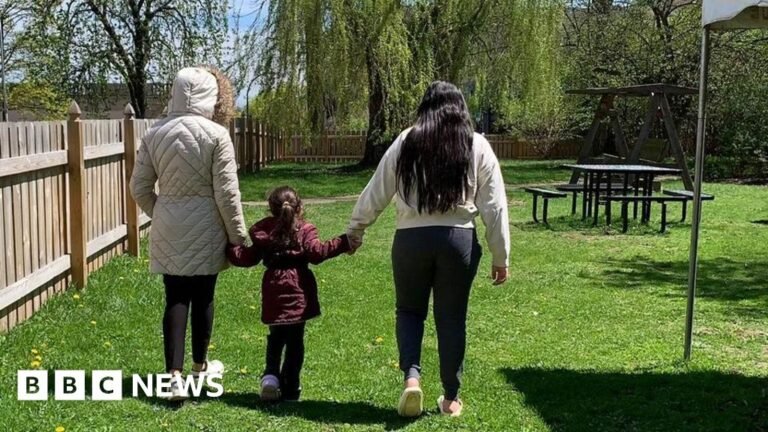 Andrea Diaz Cardona BBC News World Photo Aracely with her two daughters was waiting for a shelter for migrants in Buffalo, New York while their case was reviewed by a Canadian court The Rainbow Bridge, which crosses the Niagara River…