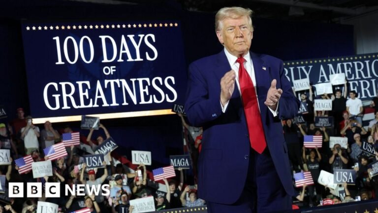 MORGAN GISHOLT MINARD BBC News Reporting fromIn Warren, Michigan Helena Humphrey Reporting fromIn Atlanta, Georgia Watch: Trump fits a second term in the note of speech first 100 days US President Donald Trump celebrates the 100th day of his second…