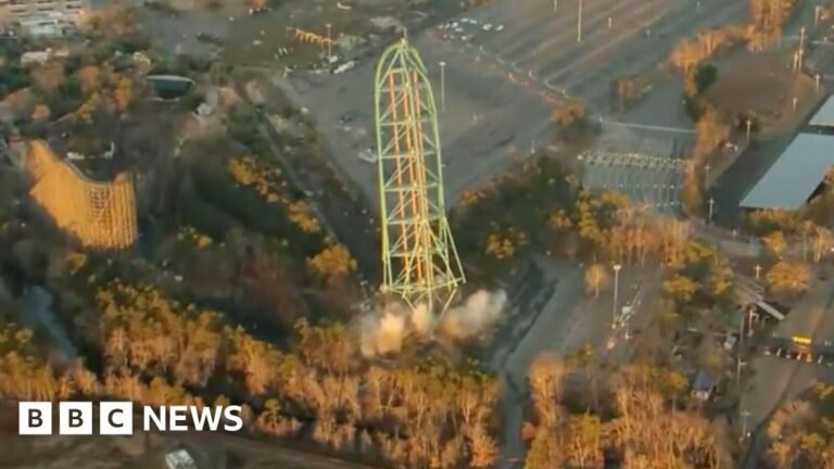 Called the highest train in the world when it opened in 2005, Kingda Ka was demolished at the Six Flags Theme Park in New Jersey. Local officials have warned that the surrounding areas can hear a “series of fast explosions”…