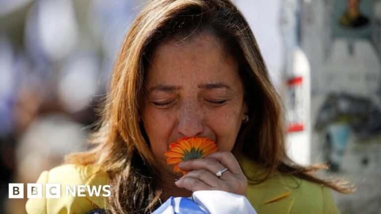 Yoland kneeling Middle East correspondent Reuters Thousands of Israelis holding flags and orange balloons lined highways to observe the funeral procession In displaying deep public grief, thousands of Israelis, many with orange balloons and Israeli flags, lined the roads of…