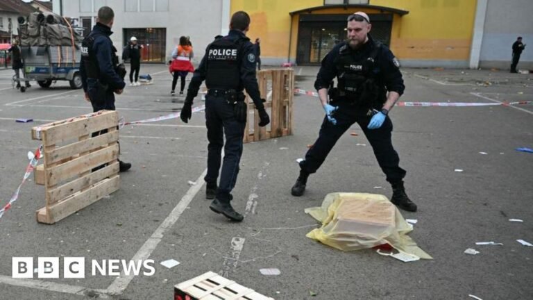 Ghetto images Police have been seen to gather evidence in Mulhaus, which is located just a few kilometers from the border with Germany One man died and two police officers were injured after an attack with a knife in the…