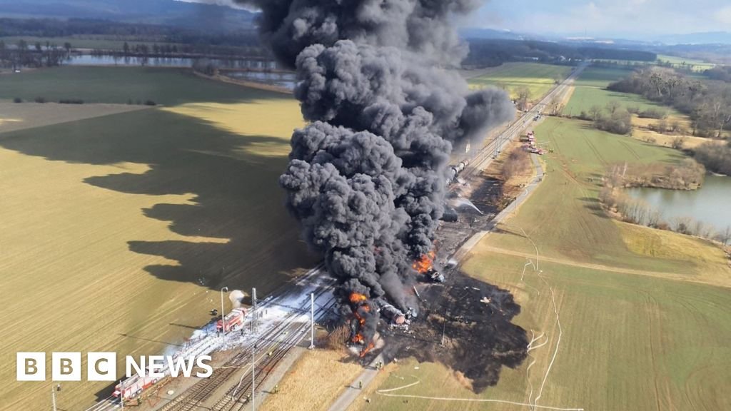 A freight train, carrying the highly toxic chemical benzene, has derailed in the Czech Republic, causing a huge fire.