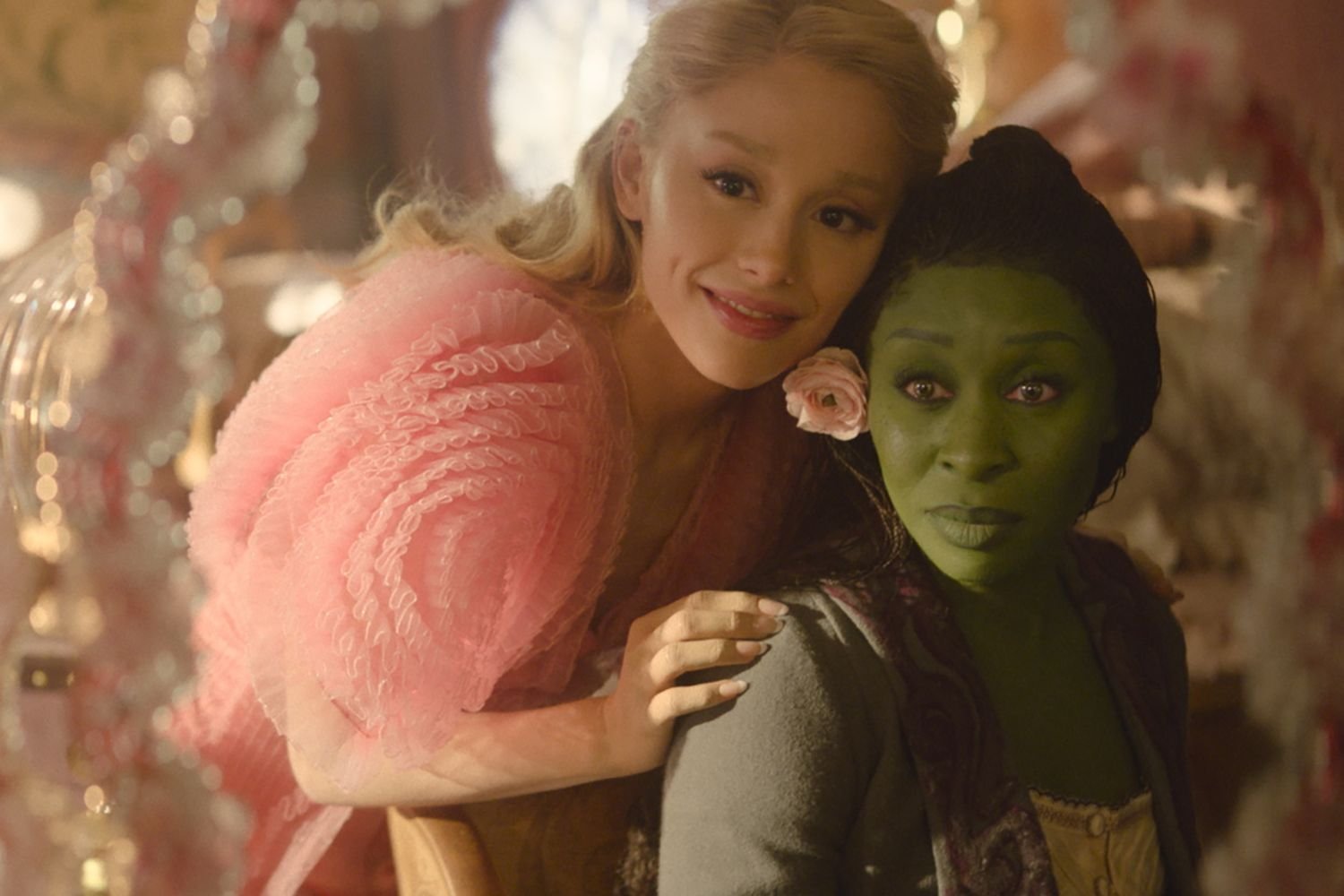 Glinda and Elfaba are sitting together in a bowl by discussing all the good discussions they can do together. Long, pink, flowing gown is wearing a huge church in a shot after a shot on a alt of firo. Are they getting married?