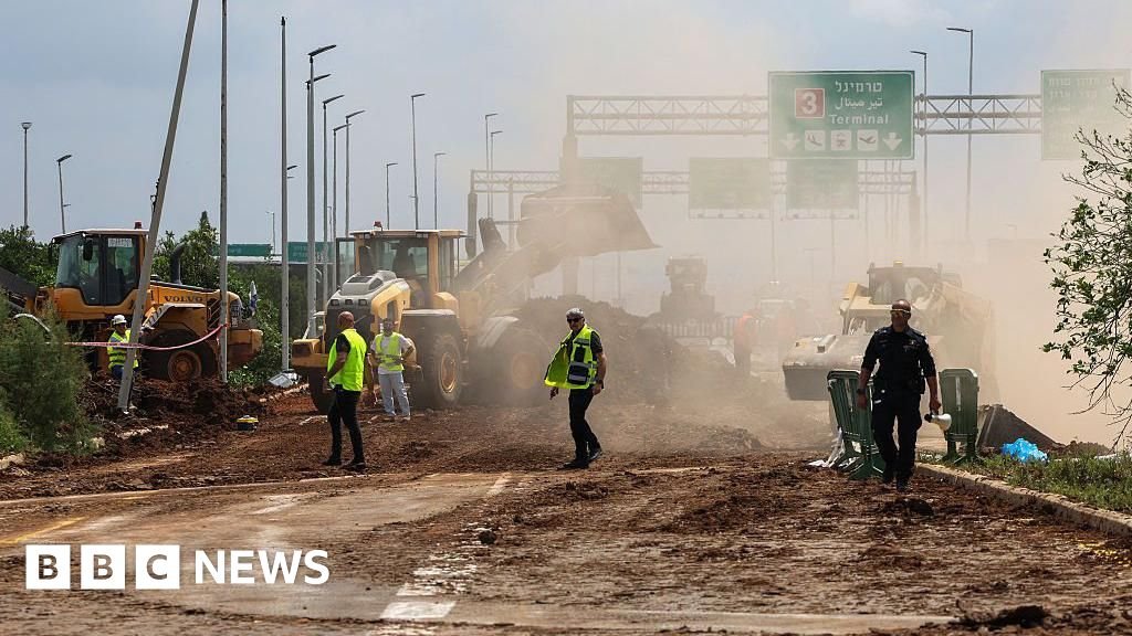 Untalized footage, published online, appeared to show the drivers on the road nearby, withdrawn to conceal themselves as land with a projectile, creating a black smoke helmet near the airport, which is on the outskirts of Tel Aviv.