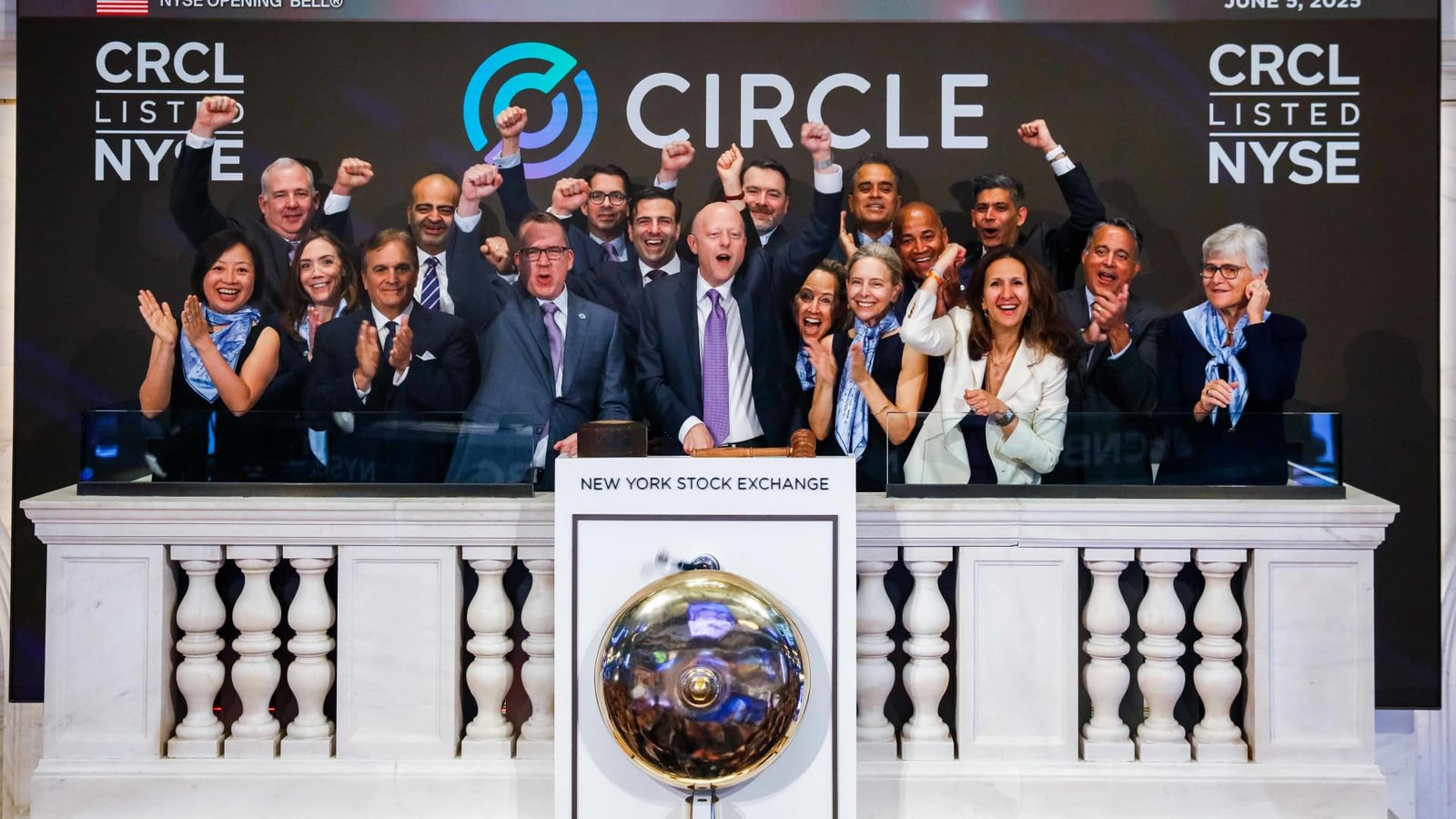 Jeremy Allaire, CEO and Co-Founder of Circle Internet Group, an issue of one of the world’s largest trainees and co-founder of Circle Internet Group Sean Neville reacted when the opening bell is ringing on the day of the company in New York, US
