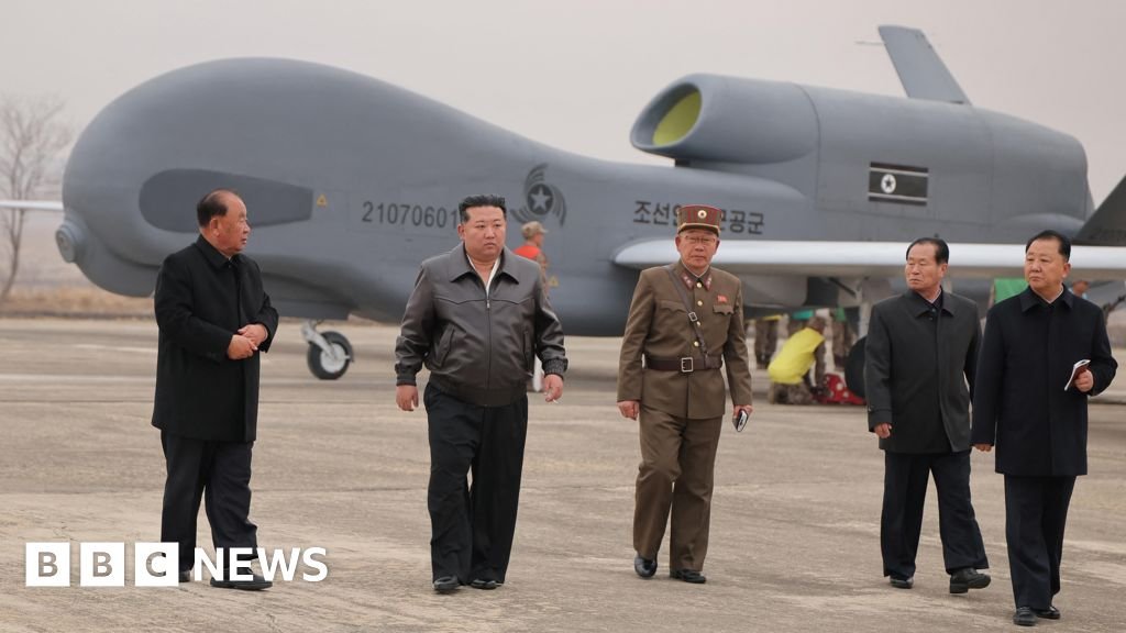 KcnaNorth Korean leader Kim Jong Un shows that he inspects new suicide drones that state media have been equipped with artificial intelligence (AI).