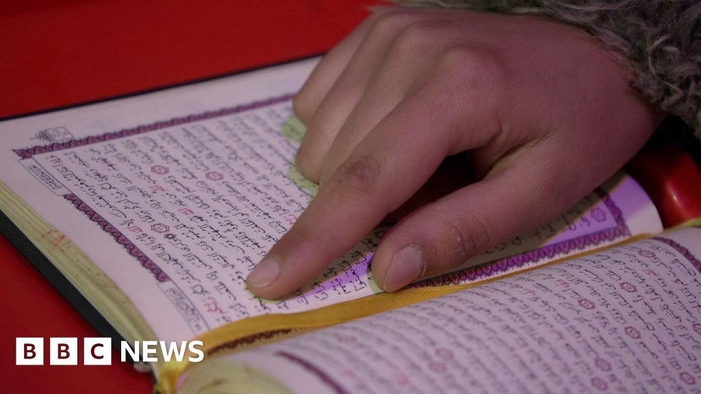 In one large room there are two classes in the Qur’an and a sewing class, as a group of girls wearing hijabs and black face masks are sitting with cross -legs on the carpet.