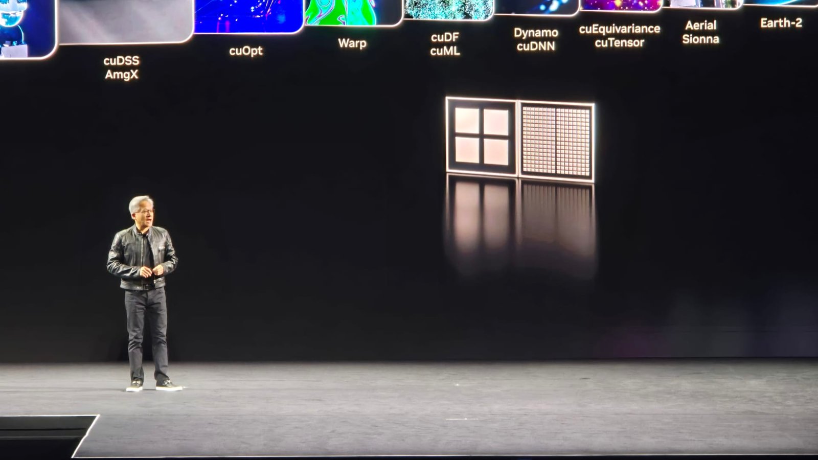 Jenson Huang, CEO of NVIDIA, talks about quantum calculations on the stage at NVIDIA GTC Paris on Wednesday, June 11, 2025.