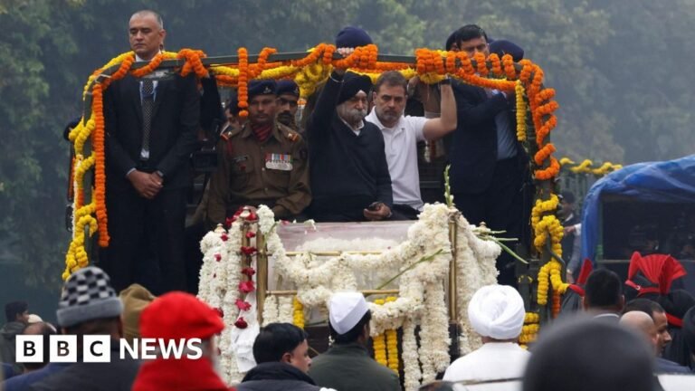 AFP via Getty Images Singh’s funeral procession through the streets of Delhi…