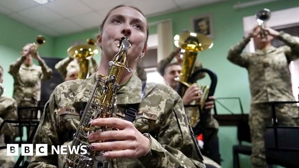 But for a Ukrainian military band, Shtedrik has become a song that inspires resistance. They even play it in the trenches – using guns as makeshift tools.