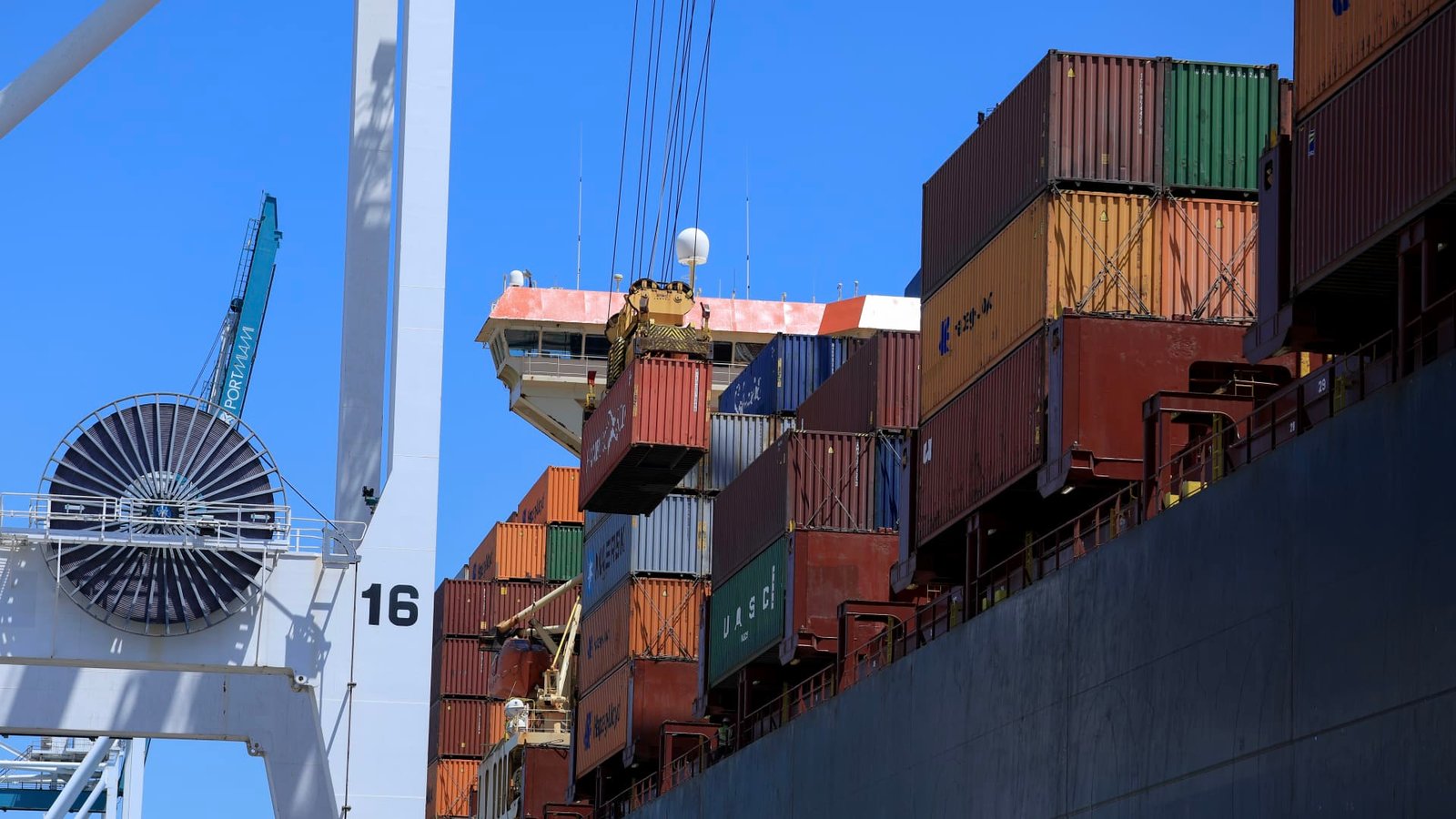 Miami, Florida – April 15: Delivery containers are arranged on a freight ship as they were unloaded in portmiams on April 15, 2025 in Miami, Florida. US President Donald Trump is reported to be examining at least 15 commercial deals as countries respond to his execution of widespread tariffs. (Photo by Joe Riddell/Getty Images)
