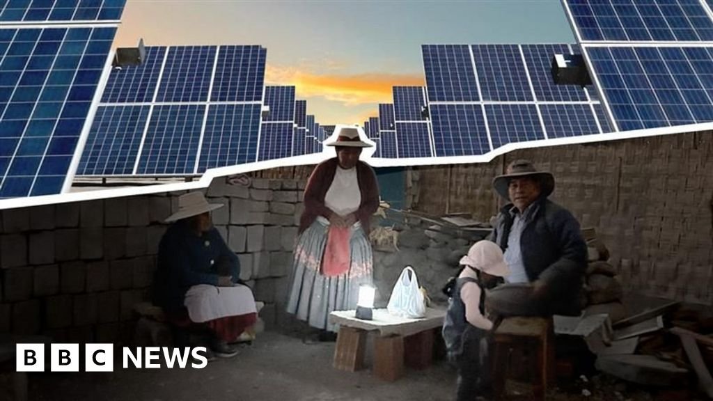 BBC composite image involving solar panels and residents of Pampa Clemesí in South PeruBbc