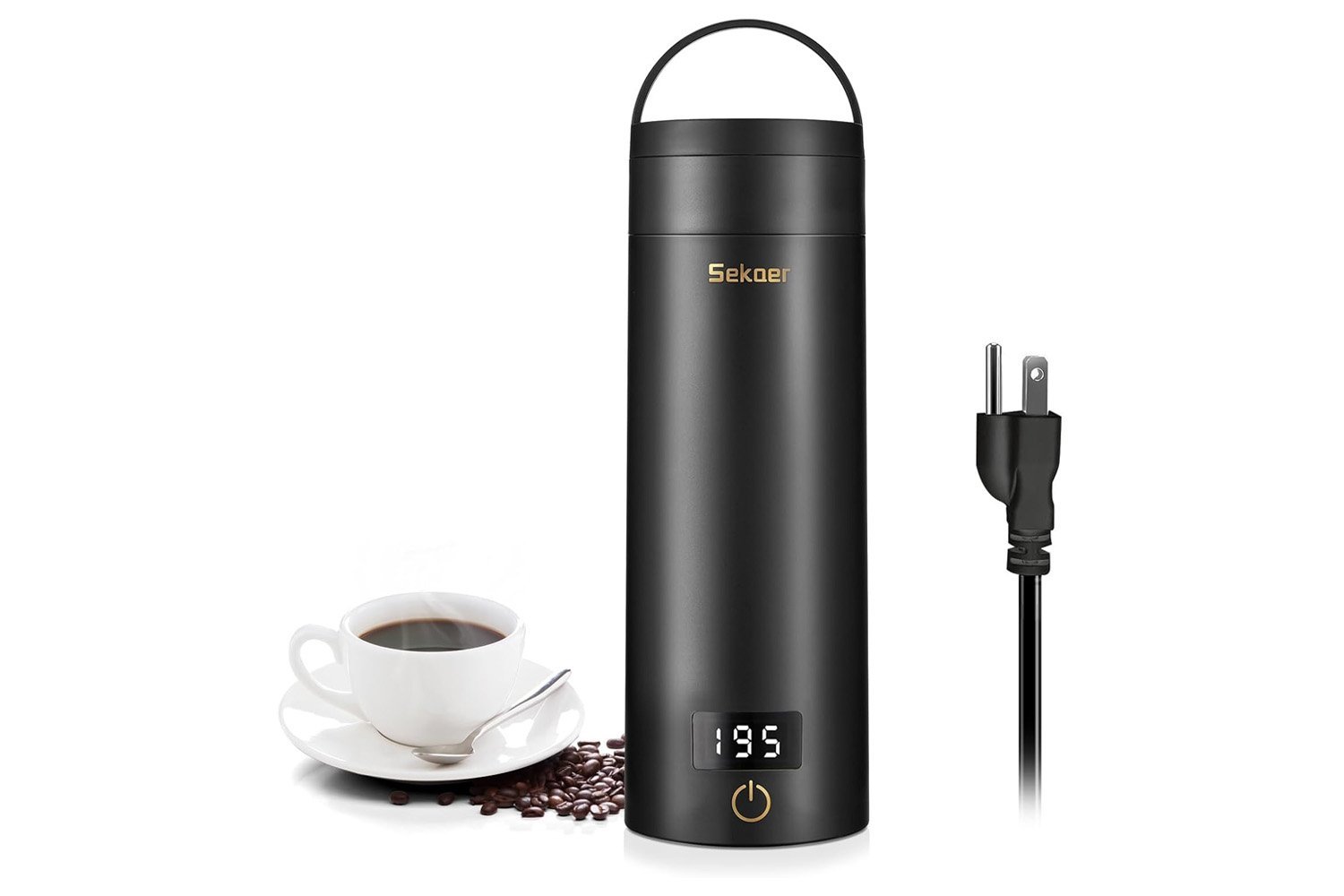The Sekaer Portable Travel Kettle is the size of any standard tumbler But able to boil water to the perfect temperature for making coffee or tea. It has four smart temperature presets that you can choose from to get the perfect cup of black tea, coffee, oolong, green tea, fruit tea and more. An LCD display indicates the actual temperature inside. It can heat up in just six to seven minutes and automatically shuts off when the kettle reaches its desired temperature.