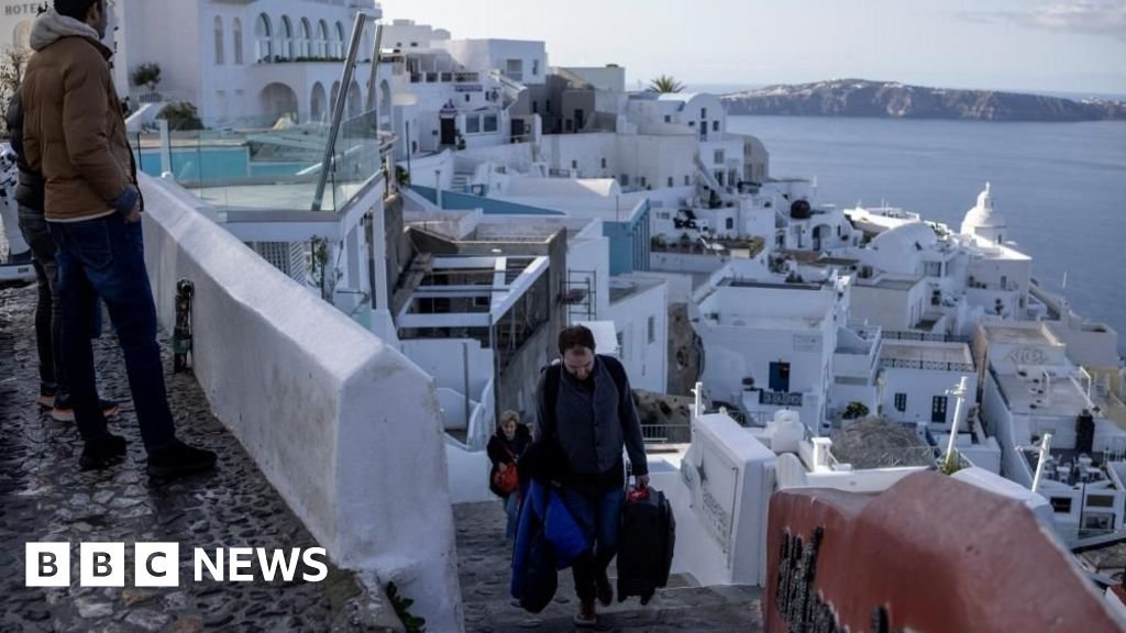 Costas Sakavaras, a guide that has lived on Santorini for 18 years, leaves the island with his wife and children on Monday.