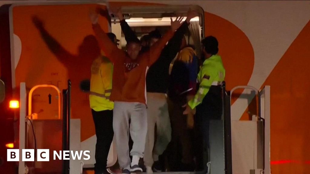 As they descended from the plane early on Monday, some of the deportors raised their hands and waved.